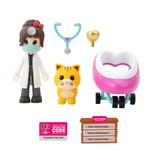 Conheça a nova linha de brinquedos do popular jogo online Adopt Me! Cada conjunto vem com 2 figuras, acessórios e 1 código de item virtual para resgatar. Comece já a sua coleção. No conjunto Sorveteria, ajude Elsa a servir sorvetes. Já no conjunto Hospital ajude o Dr. Heart a cuidar do Ginger Cat.