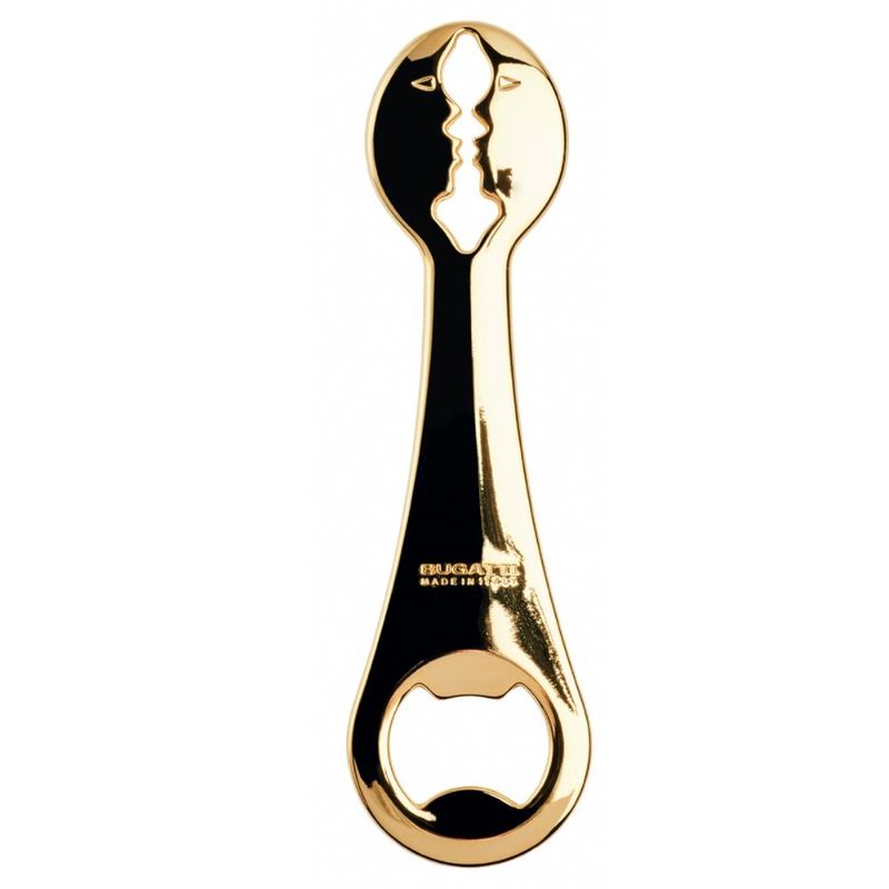 O abridor de garrafas da linha Kiss da Bugatti é folheado a ouro 24kt, ideal para presentear e ter o prazer de compartilhar a alegria de um momento inesquecível.