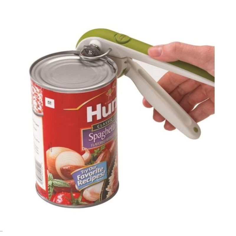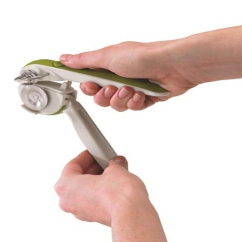 Abridor de Latas Manual Magnético Verde Multiuso Chef'nVocê está cansado de latas que parecem impossíveis de abrir? O abridor de latas manual magnético verde multiuso Chef'n é a solução perfeita para você! Com apenas uma mão e alguns toques nas alças de catraca, você pode abrir latas em um instante. Com seu mecanismo de catraca de aço inoxidável patenteado, ponta magnética na tampa e lâmina de aço inoxidável, este abridor de latas possui uma construção robusta que o torna durável e eficiente.