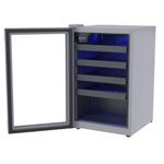 Com capacidade para até 24 garrafas, essa adega possui o inovador sistema de porta invertida, o que permite uma organização inteligente e prática para o armazenamento das garrafas, facilitando o acesso e a visualização dos rótulos. O painel digital intuitivo permite o ajuste da temperatura de forma rápida e precisa, com um controle fácil e funcional. Graças ao isolamento em poliuretano, a adega oferece excelente eficiência térmica, mantendo a temperatura interna estável e eficiente, sem sobrecarregar o consumo de energia.