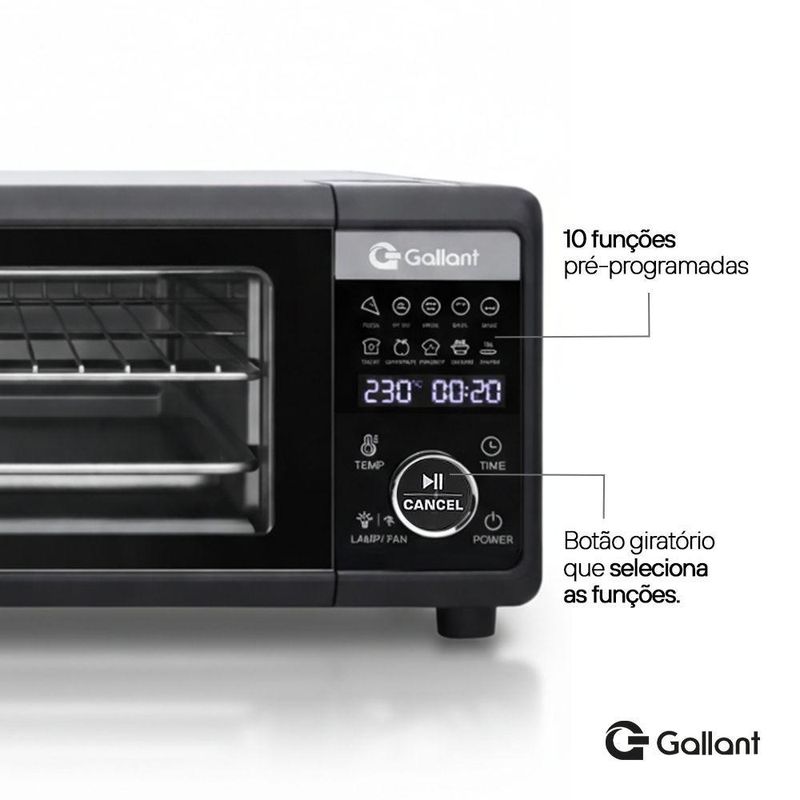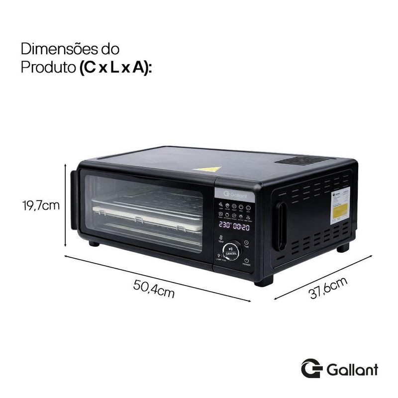 A AirFryer Gallant Pizza MultiOven é a escolha ideal para quem busca praticidade, saúde e versatilidade na cozinha. Com capacidade de 18,3 litros e funções pré-programadas, ele permite preparar desde pizzas crocantes até carnes suculentas, bolos fofinhos e vegetais grelhados, tudo de forma rápida e sem a necessidade de óleo.