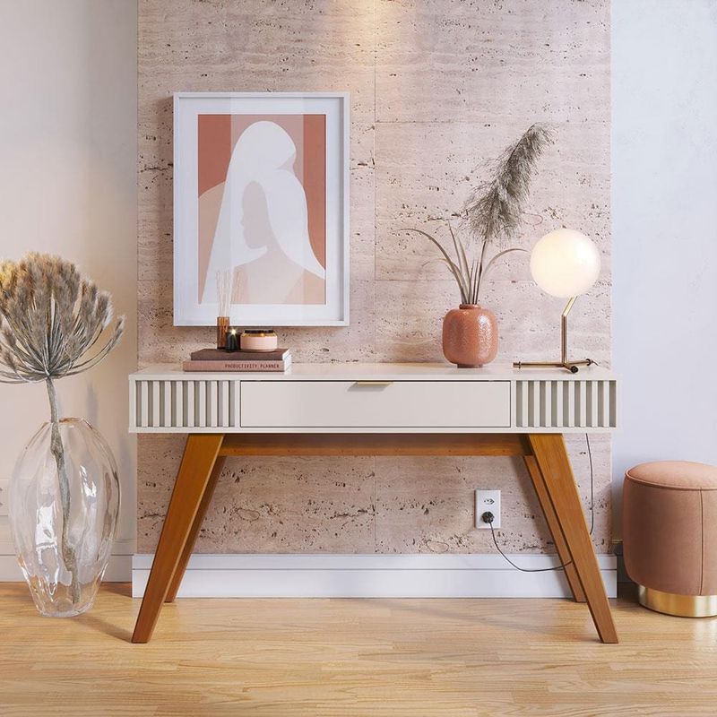 Quando você deseja tornar a sua casa mais charmosa e harmoniosa, nada melhor do que apostar em móveis com design refinado, como o Aparador Colibri Riviera. Inspirado no estilo retrô, ele tem ripas decorativas em suas laterais, que dão um destaque para lá de especial.Com pés em madeira maciça, conta com uma gaveta multiuso, para você guardar diversos itens e objetos que utiliza no seu dia a dia. A peça é fabricada em MDP e possui um tampo espaçoso, acomodando perfeitamente objetos decorativos, bem como taças e bebidas.Multifuncional, o Aparador Riviera tem acabamento em pintura UV, para que o seu design se mantenha impecável por muito mais tempo!