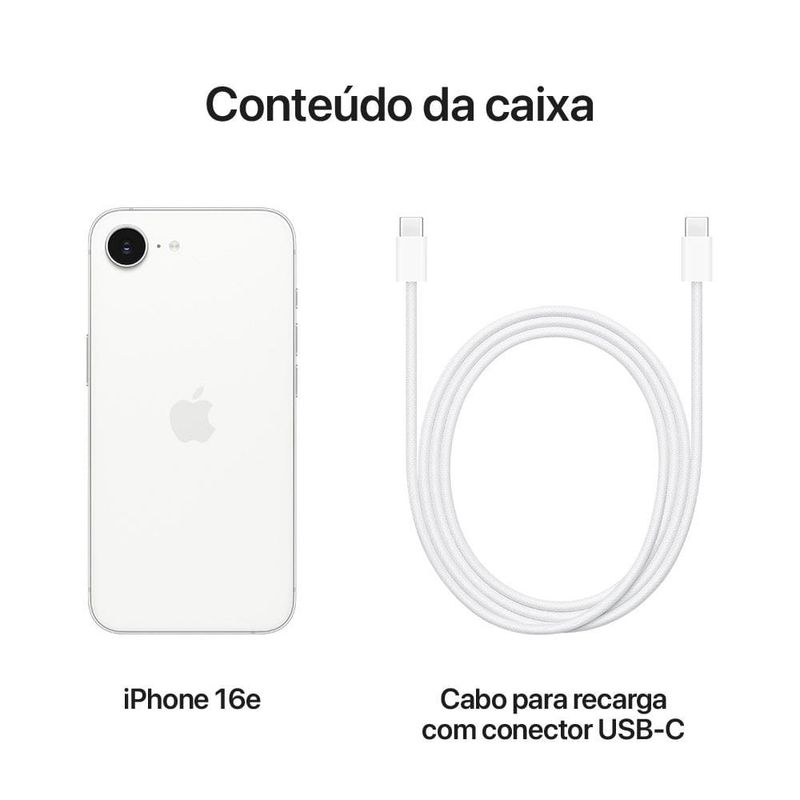 Conheça o iPhone 16e de 128GB, o smartphone que combina a essência da inovação da Apple com um valor irresistível. Projetado para oferecer uma experiência de usuário impecável, este modelo é a escolha perfeita para quem quer tecnologia de ponta sem abrir mão da praticidade e de um design elegante.Com sua estrutura robusta de alumínio de nível aeroespacial e acabamento em vidro colorido por infusão, o iPhone 16e não só é bonito, mas também feito para durar. A tela Super Retina XDR de 6,1 polegadas proporciona cores vibrantes, pretos profundos e brilho impressionante, garantindo que tudo, de fotos a filmes, tenha uma qualidade visual espetacular. A tela ainda conta com a proteção Ceramic Shield, tornando-a mais resistente a quedas.O coração do aparelho é o chip A18, uma potência que garante a execução de qualquer aplicativo ou jogo com fluidez e rapidez. O iPhone 16e foi especialmente otimizado para a Apple Intelligence, o novo sistema de inteligência pessoal que transforma a maneira como você interage com seu iPhone, tornando tudo mais inteligente e intuitivo. A bateria também merece destaque, oferecendo a melhor autonomia de sua categoria, permitindo que você navegue, jogue e trabalhe o dia todo sem preocupações.Capture cada momento com a câmera Fusion de 48MP, uma tecnologia que, na prática, funciona como duas câmeras em uma. Isso garante fotos com altíssima resolução e um zoom óptico de 2x, permitindo que você se aproxime dos detalhes sem perder qualidade. Para quem ama selfies, a câmera frontal de 12MP oferece resultados incríveis.O iPhone 16e 128GB é a união perfeita de desempenho, bateria e um sistema de câmera inovador. Ele é a porta de entrada ideal para o universo Apple Intelligence, oferecendo todos os recursos essenciais em um pacote sofisticado e confiável.