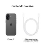 Apple iPhone 17 256GB 6,3" 48MP Preto veio com tudo, mais durável, mais adorável, com tela de 6,3” ProMotion, Ceramic Shield 2, câmeras traseiras dupla de 48 MP, câmera frontal Center Stage, processador A19 e bateria com até 30h de duração!