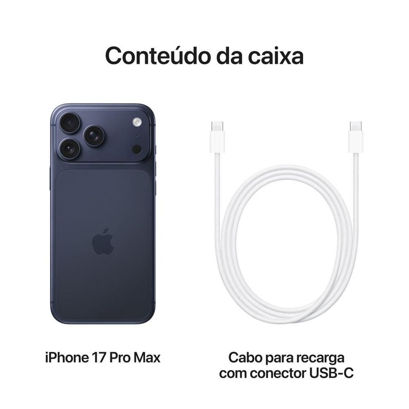 Apple iPhone 17 Pro Max 256GB 6,9" 48MP Azul-Intenso mais potente e mais robusto! Tela brilhante de 6,9 polegadas, estrutura unibody em alumínio, Processador A19 Pro, câmeras traseiras de 48 MP e bateria de longa duração.