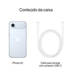 iPhone Air, O iPhone mais fino já produzido! - Design ultrafino, maior durabilidade e processamento Pro! Apple iPhone Air 256GB 6,5" 48MP Azul-Céu tem apenas 5,6mm de espessura e pesa 165g. Tela brilhante de 6,5 polegadas, estrutura de Titânio, processador A19 Pro, câmera traseira de 48 MP e bateria de longa duração.Confira todos os detalhes e inovações Apple para este iPhone: Novo Design Ultrafino em TitânioEstrutura feita em titânio Grau 5, sendo 80% dele reciclado. O iPhone Air é tão resistente quanto irresistível. Ceramic Shield - Agora, a parte de trás do iPhone Air é protegida com Ceramic Shield, 4x mais resistente a rachaduras. Enquanto o novo Ceramic Shield 2 deixa a tela 3x mais resistente a arranhões.Tela de 6,5” Tela de 6,5 polegadas, muito mais brilhante e com mais leveza ao navegar, melhor contraste em ambientes externos com 3.000 nits de pico de brilho e 33% menos reflexos.Sistema de CâmerasCâmera Frontal Center Stage de 18 MP – Para selfies mais inteligentes, com flexibilidade ao enquadrar. Vídeos com capturas dupla para gravação simultânea das câmeras frontal e traseira.Câmera Traseira Câmera Fusion de 48 MP, Duas Câmeras avançadas em uma. Sistema de câmera Fusion de 48 MP e zoom de 2x com qualidade óptica, que permite o enquadramento de foto perfeita sem sair do lugar.Processador A19 ProConta com GPU de 5 núcleos e Neural Accelerators aprimorado dá conta de tudo o que você faz no iPhone, incluindo a Apple Intelligence e jogos AAA (mais avançados). 256GB ArmazenamentoCom capacidade de Armazenamento de 256GB para guardar tudo! Fotos, vídeos, documentos e momento incríveis!Bateria para o dia todo