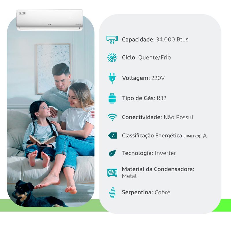 funções inteligentes e alta durabilidade, o Ar-Condicionado Convencional TCL é