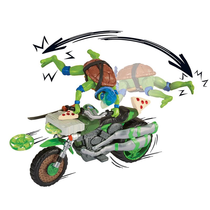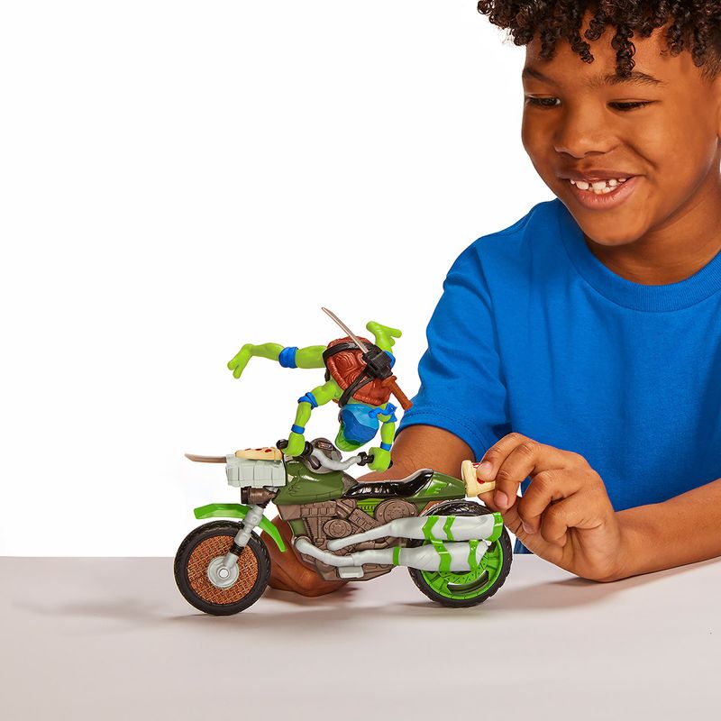 Quando os bandidos ficam fora de controle e começam a causar estragos na cidade, as Tartarugas enviam Leo em seu Ninja Kick Cycle para cuidar do problema. Leo vai rapidamente para o local e fica instantaneamente pronto para a ação! O poderoso Ninja Kick Cycle é autenticamente detalhado e vem com um boneco do Leonardo exclusivo, com 12 pontos de articulação para movimentos de ação de batalha.