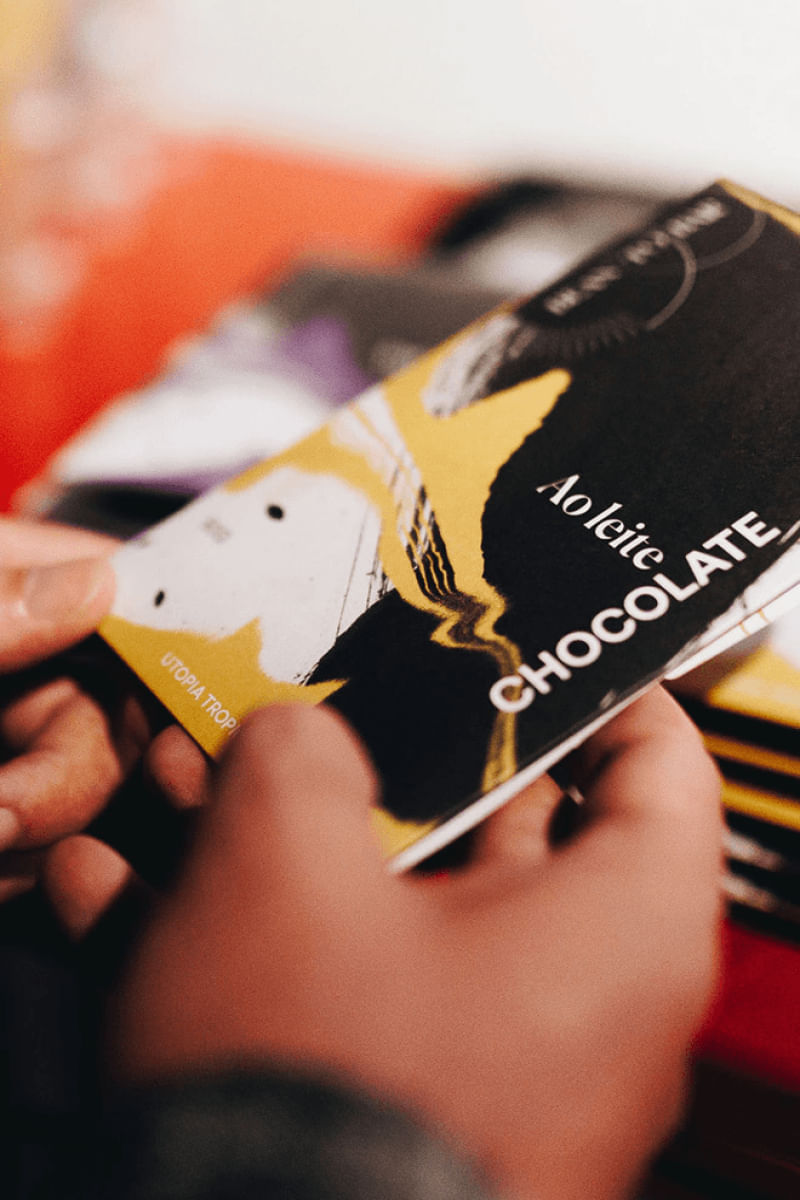 Sobre a Utopia Tropical: Em 2022, Julian Caron Lys, franco-suíço de Genebra, fundou uma fábrica de chocolate no Brasil para trabalhar com cacau selvagem brasileiro. Após se apaixonar pelo país em sua primeira visita, decidiu voltar para realizar esse sonho. Optou por Curitiba para sua fábrica, na Rua São Francisco 179, buscando proximidade com as pessoas e o cenário cultural.