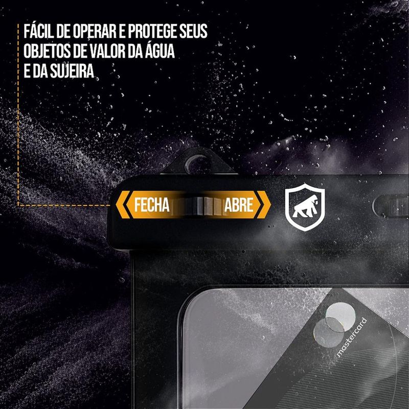 Seu design funcional permite armazenar com segurança diversos objetos essenciais, como celular, dinheiro, documentos, cartões, óculos de sol, fones de ouvido e pequenos acessórios, tudo em um único lugar. O sistema de vedação foi pensado para proporcionar uma fechamento hermético, fácil de manusear e extremamente seguro, impedindo a entrada de água mesmo em contato direto com chuvas fortes, respingos ou quedas acidentais na água.