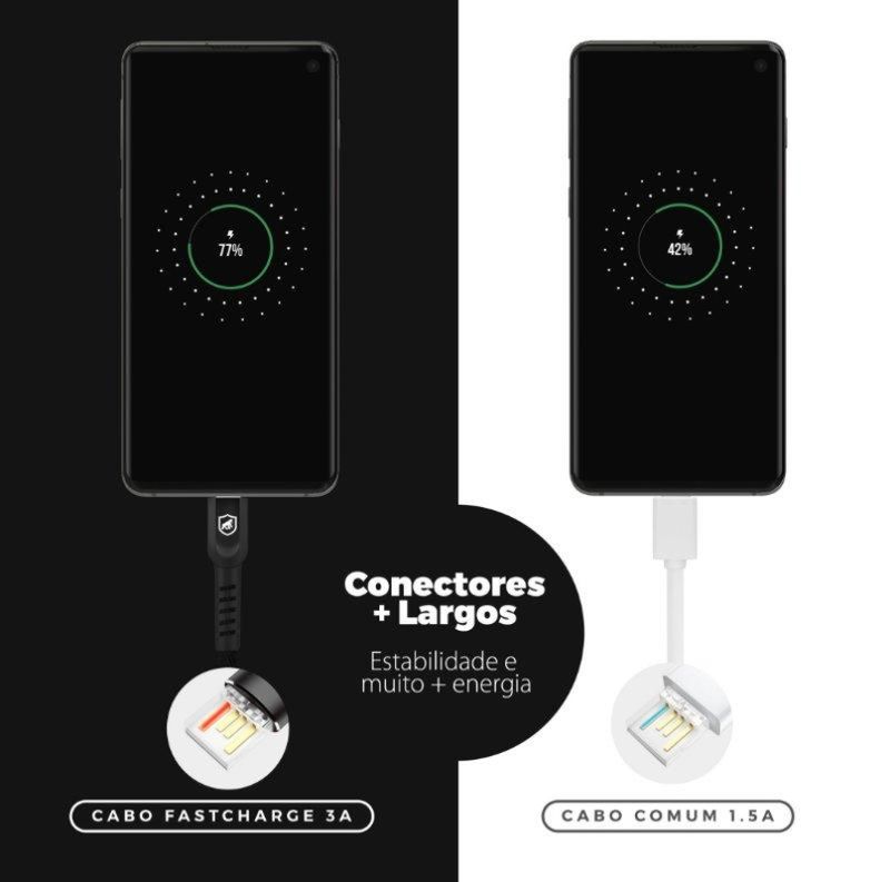 O cabo Dual Shock, da Gorila Shield, possui 2m de cabo revestido em PVC reforçado, proporcionando mais resistência e maior durabilidade ao acessório. Para quem possui aparelhos com a tecnologia Qualcomm 3.0, o Dual Shock é compatível. Para guardar o cabo de uma forma mais segura, prenda o acessório com a presilha Smart Arrange.