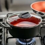 A caçarola acompanha tampa de vidro temperado com saída para vapor, facilitando acompanhar o cozimento sem abrir a tampa o tempo todo. Além disso, o produto é PFOA free, ou seja, livre de liberação de toxinas. E, ao final do ciclo, pode retornar para se tornar uma nova peça, já que o alumínio é 100% reciclável.