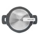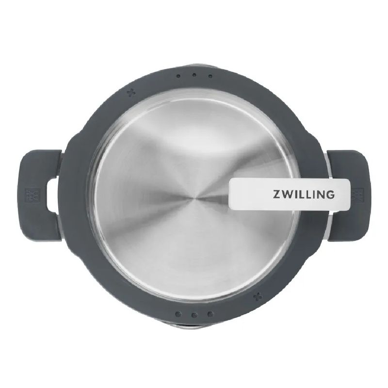 A caçarola ZWILLING Simplify combina design inteligente e alta funcionalidade para elevar o preparo das refeições. Produzida em aço inox 18/10 com acabamento acetinado, conta com base sanduíche Sigma Classic+ para distribuição uniforme do calor. A tampa de vidro possui contorno em silicone com peneira integrada em dois tamanhos, permitindo escorrer líquidos sem a necessidade de utensílios adicionais. O suporte de tampa integrado mantém a área de cocção limpa, enquanto a marcação em X indica a posição ideal para reduzir a saída de vapor. As alças laterais com silicone de toque suave proporcionam manuseio confortável e seguro.