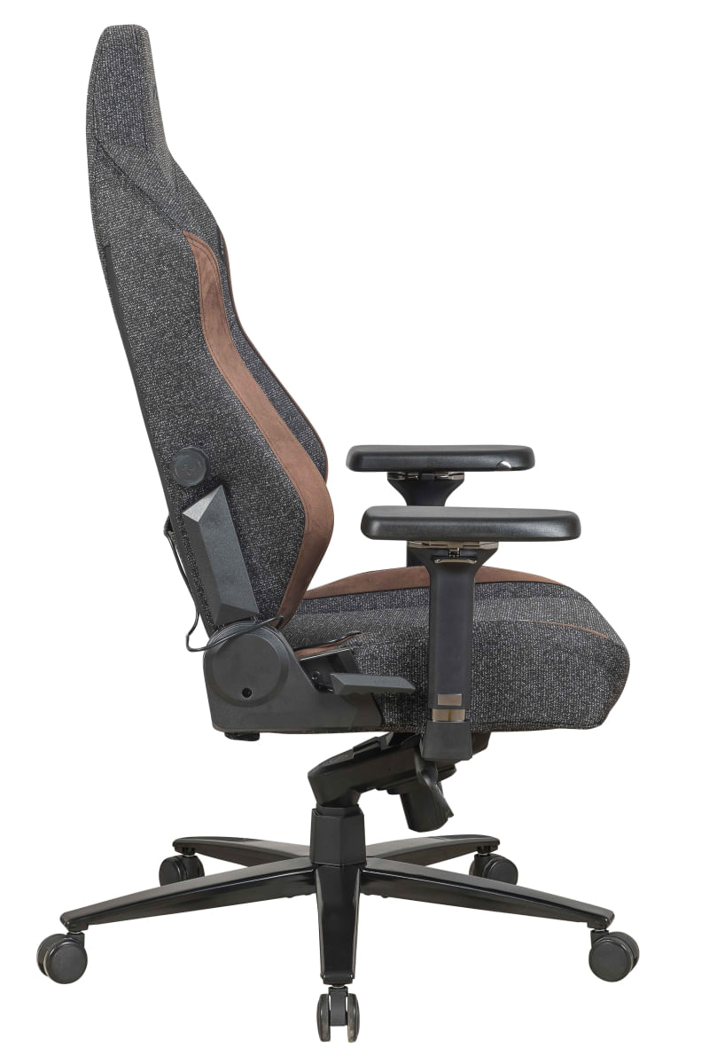 Braços 4D com estrutura em aço reforçado, ligados a cadeira através de quatro parafusos de aço com arruelas de pressão além de cola nas pontas para uma fixação extraordinária. O braço possui quatro regulagens, para cima e para baixo, para frente e para trás, para esquerda e para direita e rotação. O apoio de braço é confeccionado em P.U especial tipo SKIN macio.