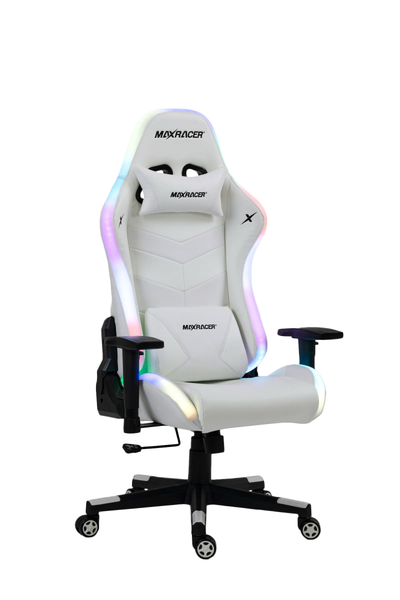A cadeira MaxRacer Gamer Khroma Wi-Fi veio para fechar com chave de ouro aquele setup gamer de alto padrão tecnológico e também de beleza. O encosto e o assento são totalmente envoltos com fitas de LED RGB. E você controla tudo por aplicativo ou comando de voz!