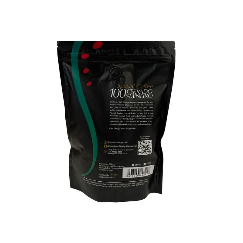 Santiago é um café cuidadosamente produzido a partir de grãos 100% arábica, selecionados e de alta qualidade. Esses grãos são cultivados na Fazenda Santiago, situada a uma altitude entre 950 e 1.100 metros, resultando em um café de identidade única e excelente qualidade.