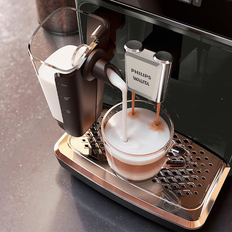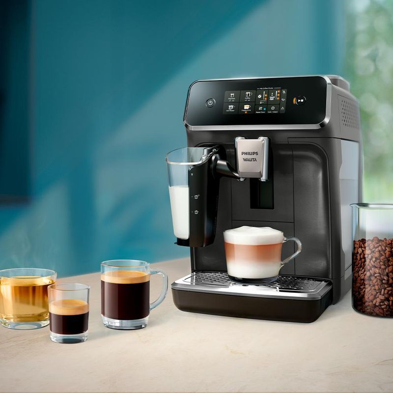 Tenha sua própria cafeteria dentro de casa com a Cafeteira Espresso Superautomática LatteGo Série 2300, faça cafés frescos com grãos moídos na hora, além de cappuccino graças ao sistema LatteGo. São 12 níveis de moagem, moinhos 100% de cerâmica para máxima durabilidade e precisão. 15 bars de pressão e seu café fresco com o máximo de aroma por muito mais tempo. 3 variedades de café, espresso, lungo e cappuccino em apenas um toque, além da opção de água quente. Painel touch e intuitivo, com o display My Coffee Choice para