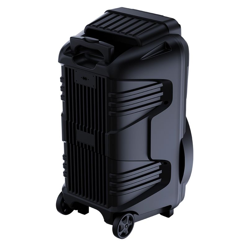 A conectividade é um dos grandes diferenciais desta caixa. São 6 modos de reprodução, permitindo o uso de entradas P10 para microfones e instrumentos musicais, além de entrada auxiliar, porta USB, cartão de memória, Bluetooth e rádio FM com memorização de estações.