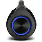 O pareamento Bluetooth tem alcance de até 25 metros e, se preferir, você ainda pode conectar dispositivos via entrada auxiliar ou USB. Para quem gosta de cantar, a caixa traz entrada para microfone, perfeita para momentos de karaokê.