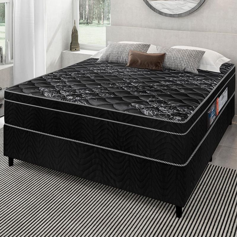 Com a Cama Box de Casal Portobel você vai dormir e descansar tranquilamente!Com um lindo design, a Cama Box Portobel, oferece elegância e sofisticação ao seu dormitório, garantindo a harmonização com os demais móveis do ambiente garantindo estilo, conforto e praticidade.Além disso, o seu colchão possui Espuma D-45 certificada pelo Inmetro e tecido stretch no tampo com detalhes floridos no fio cor de prata e faixa matelada em poliéster na cor preta.Já a Base Box possui pinus de reflorestamento e conta com revestimento em tecido de poliéster matelado, além de pés fixos de 12 cm que garantes a sustentação da cama e do colchão.