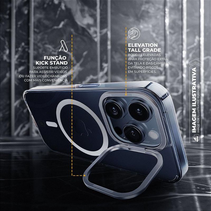 Proteção premium, transparência impecável e praticidade no dia a dia. A Crystal Armor Stand realça o design do seu iPhone 16 Plus sem abrir mão de resistência, funcionalidade e compatibilidade total com acessórios MagSafe.