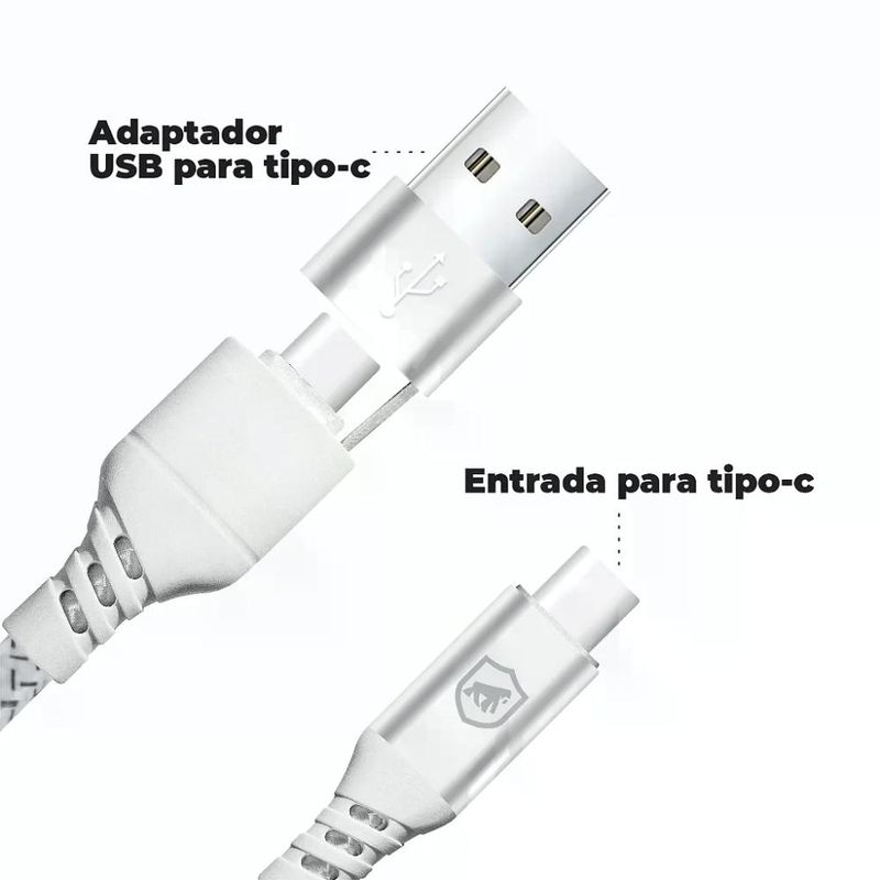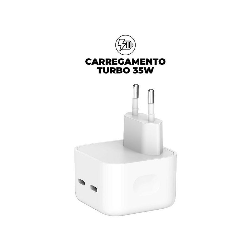 "1) O Carregador de Parede Turbo com 2 Entradas Tipo C da Gshield é a solução definitiva para todas as suas necessidades de carregamento de dispositivos. Ele é um carregador de parede inteligente, que combina velocidade, segurança e versatilidade em um design elegante e compacto. Com duas entradas Tipo C, o carregador permite carregar dois dispositivos simultaneamente, proporcionando uma solução conveniente para famílias ou profissionais em movimento. A tecnologia Turbo integrada garante uma carga rápida e eficiente, permitindo que você recarregue seus dispositivos até 3 vezes mais rápido do que os carregadores convencionais. Projetado com materiais de alta qualidade e construção robusta, o Carregador de Parede Turbo da Gshield oferece proteção contra sobrecarga, sobrecorrente, sobretensão e superaquecimento, garantindo a segurança dos seus dispositivos durante todo o processo de carregamento. Seu design compacto e elegante facilita o transporte, sendo ideal para uso em casa, no escritório ou em viagens. Compatível com uma ampla gama de dispositivos eletrônicos, desde smartphones e tablets até notebooks e consoles de jogos, o carregador é a escolha perfeita para manter todos os seus dispositivos carregados e prontos para uso, a qualquer momento e em qualquer lugar. Com o Carregador de Parede Turbo da Gshield, você pode desfrutar de um carregamento rápido, seguro e eficiente, mantendo-se conectado ao mundo ao seu redor, sem interrupções. Confie na qualidade e desempenho incomparáveis da marca Gshield para todas as suas necessidades de carregamento de dispositivos. 2) O Cabo Thunder 2 em 1, da Gshield, combina versatilidade, potência e conveniência para atender a todas as suas demandas tecnológicas. Esse cabo versátil foi projetado para oferecer conveniência e desempenho excepcionais em um único produto, afim de garantir que você tenha todas as funcionalidades necessárias ao seu alcance! Compatibilidade e Adaptabilidade  Além dos conectores Tipo C, o Cabo Thunder 2 em 1 também possui um adaptador integrado da porta USB padrão, garantindo compatibilidade com uma ampla gama de dispositivos.  Carregamento até 65W Com uma potência de 65W, o cabo Thunder permite um carregamento rápido e eficiente para todos os seus dispositivos compatíveis com USB Tipo C. Diga adeus à espera demorada e obtenha energia em tempo recorde. Transferência de Dados Além do carregamento rápido, o Cabo Thunder 2 em 1 oferece transferência de dados em alta velocidade. Isso possibilita mover arquivos, fotos e vídeos entre dispositivos com facilidade e rapidez. Alta Qualidade O cabo é construído com materiais de alta qualidade, possui revestimento em malha reforçada que oferece durabilidade excepcional e um desempenho confiável. Seus conectores são robustos e projetados para resistir à corrosão, e o próprio cabo é revestido para suportar o desgaste, proporcionando uma longa vida útil. Sua versatilidade, velocidade e confiabilidade tornam-no um acessório indispensável para quem valoriza eficiência e alto desempenho. Simplifique sua vida digital com o Cabo Thunder 2 em 1! ESPECIFICAÇÕES  Carregador Marca: Gshield Carregamento: Qualcomm 3.0 Cor: Branco Entrada: AC 100  240V 50/60Hz 0,7A (9V) Output USB-C: (PDO)5,0V3A ou 9,0V2,77A (PPS)3,3-5,9V3,0A ou 3,3-11V2,25A Potência Máxima Usando Uma Porta: 35W USB C1 ou C2 : 5V=3A; 9V=3A; 15V=2.33A; 20V=1.75A Potência Máxima Usando Duas Portas: 17,5W em cada uma USB C1 e C2: 5V=2.4A;9V=1.94A;15V=1.16A;20V=0.87A Certificação: ANATEL Cabo Marca: Gshield Material: Revestimento em malha reforçada Cor: Branco Diâmetro: 4,5 mm Tamanho: 1,8m  Entrada 2 em 1: USB-A para Tipo C | Tipo C para Tipo C Potência de carregamento: 65W COMPATIBILIDADE Cabo Thunder 65W 2 em 1 Tipo C - 1,8M ITENS INCLUSOS 1x Carregador 2x Cabo"