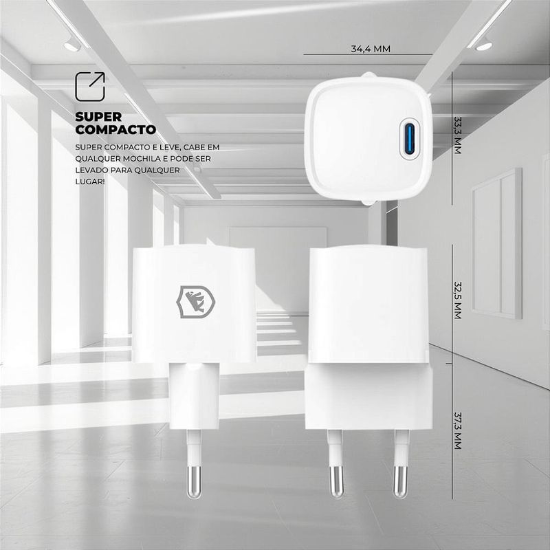 Carregador Turbo Gan Ultra Slim Tipo C 20W - Exclusivo Online - Branco - Gshield