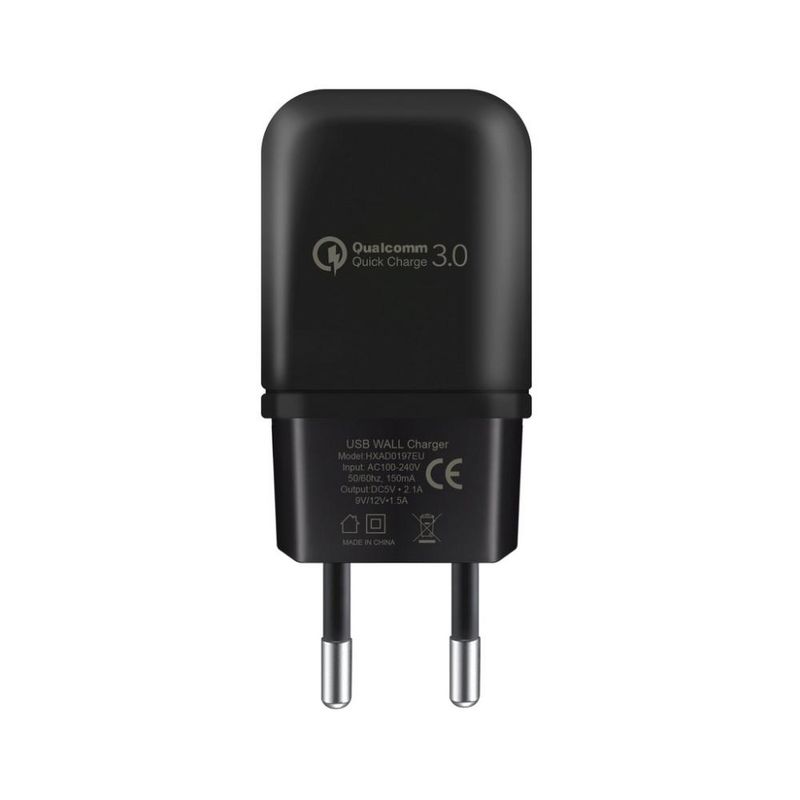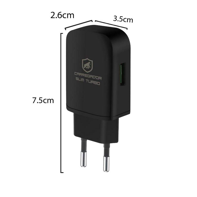 O Carregador Turbo Slim é leve e pequeno, por isso é prático para levar na bolsa, na mochila ou na necessaire. Além disso, ele também é potente. Graças à tecnologia Qualcomm Quick Charge 3.0, ele carrega o aparelho mais rapidamente*. *Para um carregamento rápido, é necessário que o smartphone/tablet também tenha a tecnologia Qualcomm. Peso: 37 gramas Altura: 7.5cm Cor: Preto Model: HXAD - 0197EU Input: AC100-240V 50/60Hz, 150mA Output: DC5V=2.1A 9V/12V=1.5A