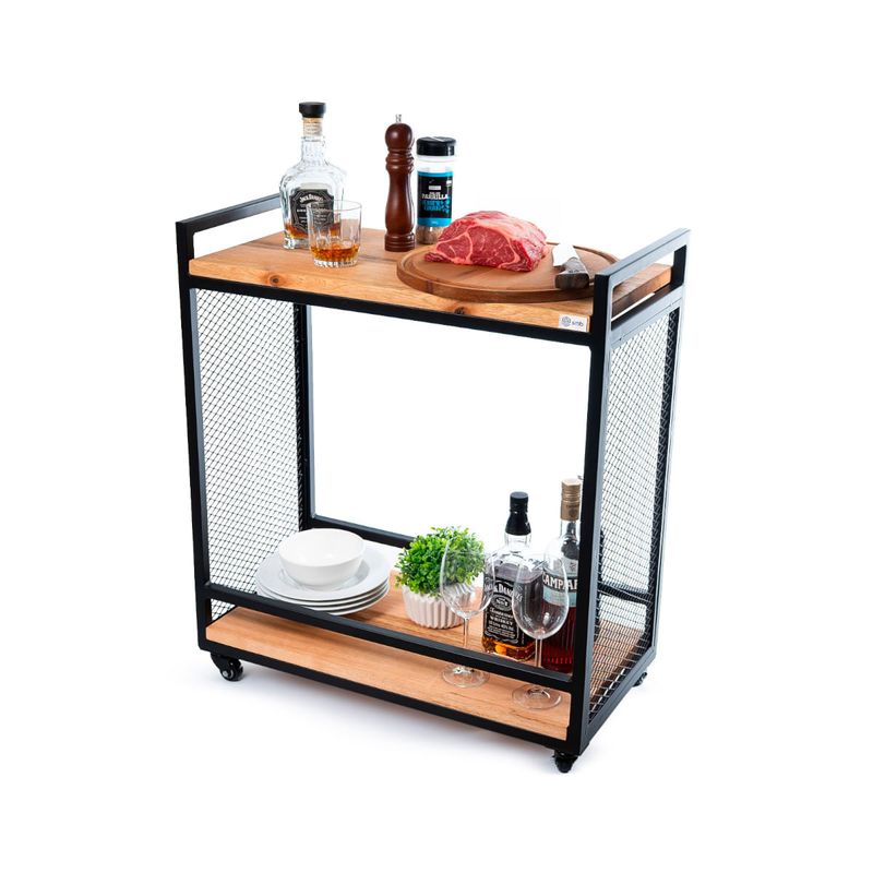 O Carrinho Churrasco Mesa de Servir Multiuso Gourmet em Aço e Madeira Maciça é a solução ideal para quem busca praticidade, resistência e sofisticação em um único produto. Fabricado com estrutura em aço de alta qualidade e prateleiras em chapa expandida 12x25 combinadas com madeira maciça, oferece excelente durabilidade e um visual moderno que valoriza qualquer ambiente gourmet. Conta com quatro rodízios que facilitam o deslocamento, permitindo uso versátil tanto em áreas internas quanto externas. Com acabamento de alto padrão, o carrinho possui 70 cm de comprimento, 35 cm de largura e 75 cm de altura, suportando até 80 kg por prateleira, garantindo segurança e funcionalidade no dia a dia. Leve e robusto ao mesmo tempo, com peso aproximado de 14,8 kg, é perfeito para servir churrascos, apoiar utensílios, bebidas e alimentos, tornando seus momentos de lazer ainda mais práticos e organizados.
