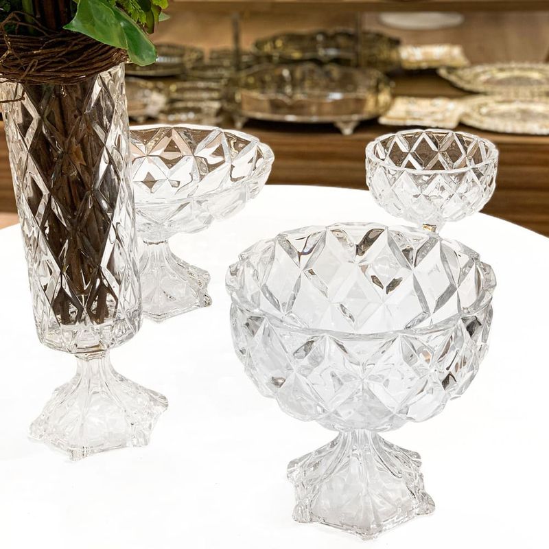 Design elegante e dimensões generosasO Centro de Mesa de Cristal Deli Diamond da Lyor é uma peça de destaque em qualquer ambiente, combinando beleza e funcionalidade. Com suas amplas dimensões de 32,5cm x 19,5cm, este centro de mesa foi projetado para ser um elemento decorativo que atrai olhares, elevando a sofisticação do espaço onde é inserido.Cristal de alta qualidadeProduzido com cristal de qualidade superior, o Deli Diamond se destaca pelas facetas cuidadosamente trabalhadas que refletem a luz de forma impressionante. Cada entalhe é feito com precisão para criar um efeito visual deslumbrante, transformando o ambiente em uma verdadeira obra de arte.Atmosfera de sofisticaçãoO brilho refratado do cristal Deli Diamond cria uma atmosfera única de elegância e sofisticação. Ideal para ocasiões especiais, este centro de mesa é capaz de transformar momentos simples em experiências inesquecíveis, tornando-se o ponto central da decoração.
