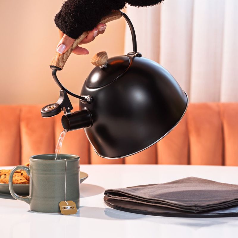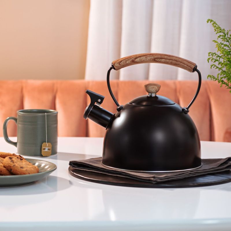 Diferenciais:Capacidade de 1,3L: ideal para uso individual ou em famíliaApito sonoro: avisa quando a água ferveFundo de indução: compatível com todos os fogõesAço inox: durável, fácil de limpar e seguroCabo soft-touch com acabamento amadeirado: conforto térmico e estilo retrôDesign vintage preto fosco: elegante e atemporalBico de precisão: evita respingos ao servir