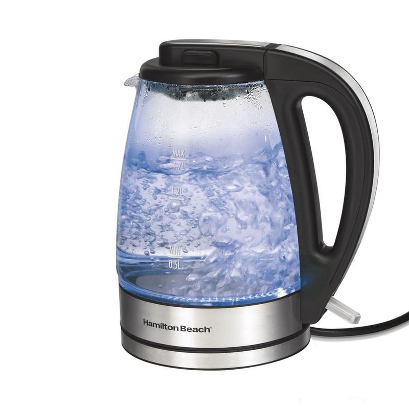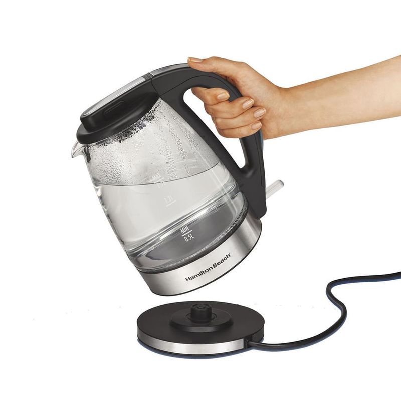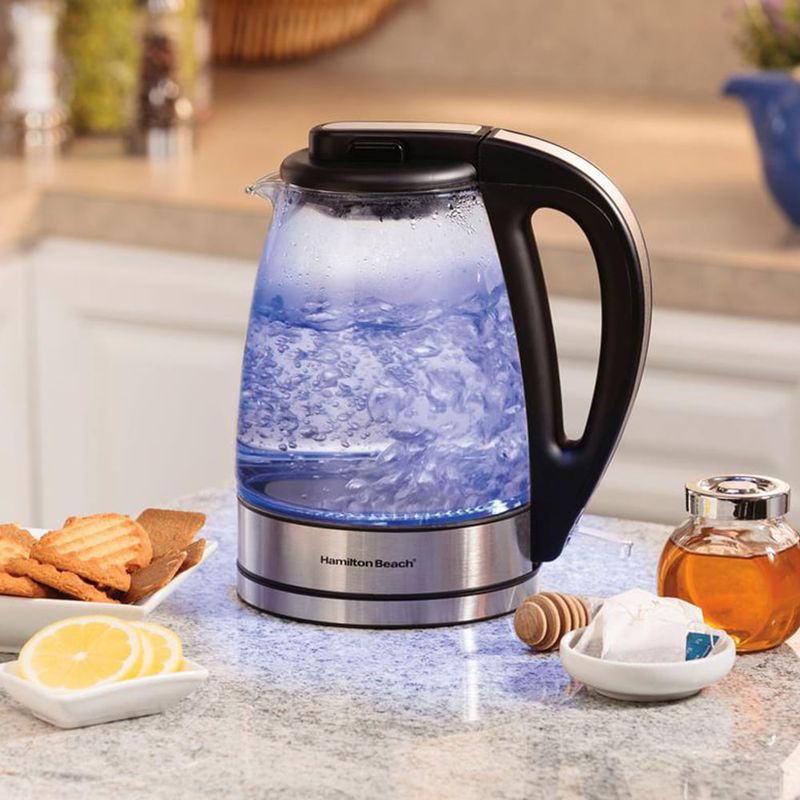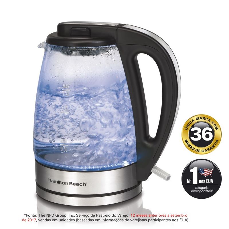 A Chaleira Elétrica Hamilton Beach tem filtro embutido, função Desligar Automático e um sistema que não permite o aquecimento sem água. Além de bonita, a iluminação azul serve para indicar que o aparelho está em funcionamento. Para evitar o contato com a parte mais quente da chaleira, o aquecedor fica escondido. Esquentar água ficou fácil, prático e bem mais seguro.