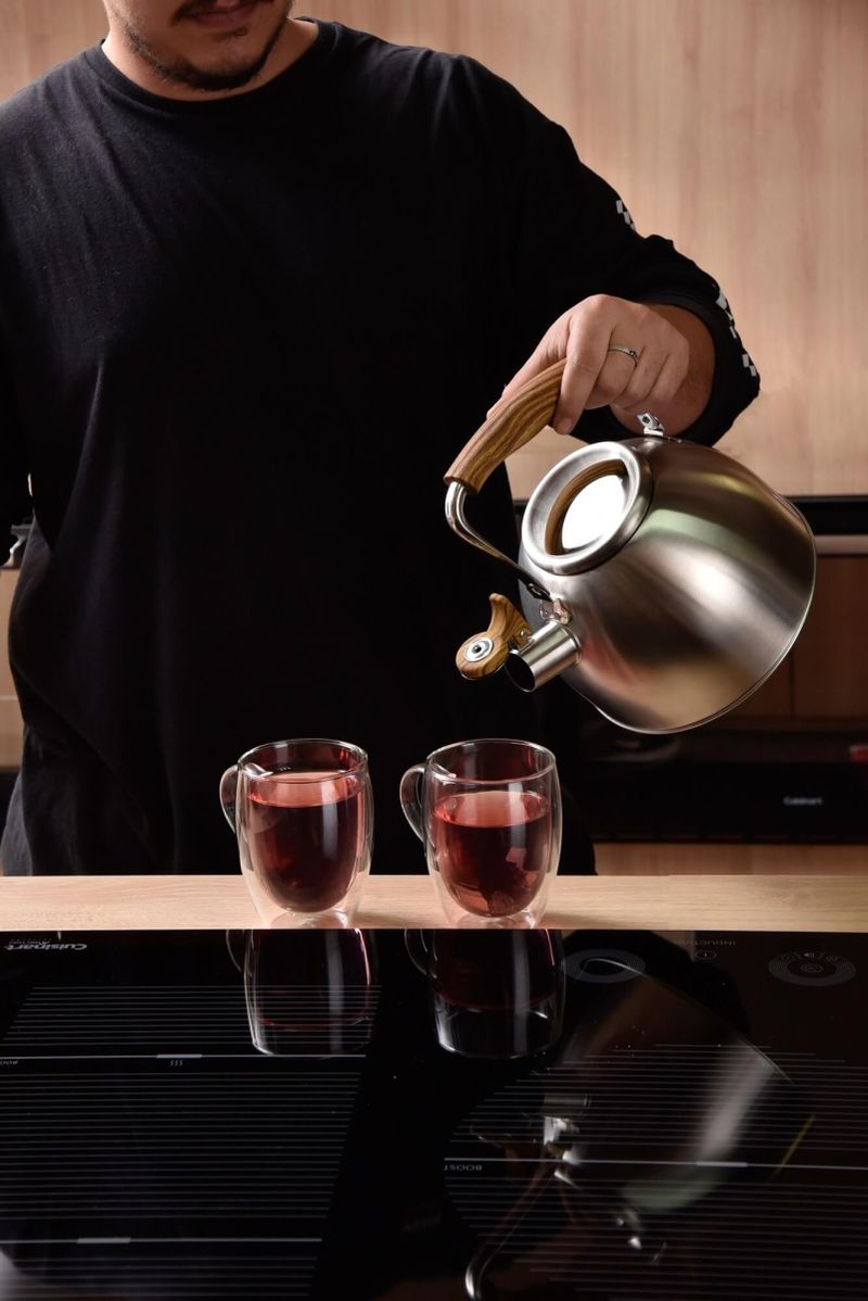 Especificações do Produto:Alta durabilidade: corpo em aço inox resistente e fácil de limpar.Versátil: conta com fundo de indução e serve em todos os tipos de fogões.Capacidade ideal: 2,5L, perfeita para preparar água para café, chá ou outras bebidas.Design sofisticado: cabo e detalhes com efeito madeira, trazendo elegância à cozinha.Mais segurança: cabo ergonômico que facilita o manuseio, mesmo quente.Praticidade: bico com apito que avisa quando a água atinge o ponto de fervura.Medidas compactas: fácil de guardar e manusear.