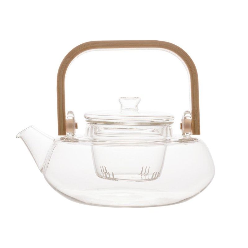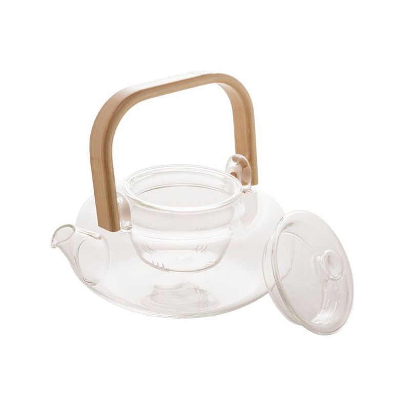 Chaleira de Vidro Borossilicato Resistente a Calor com Alça de Bambu 800ml