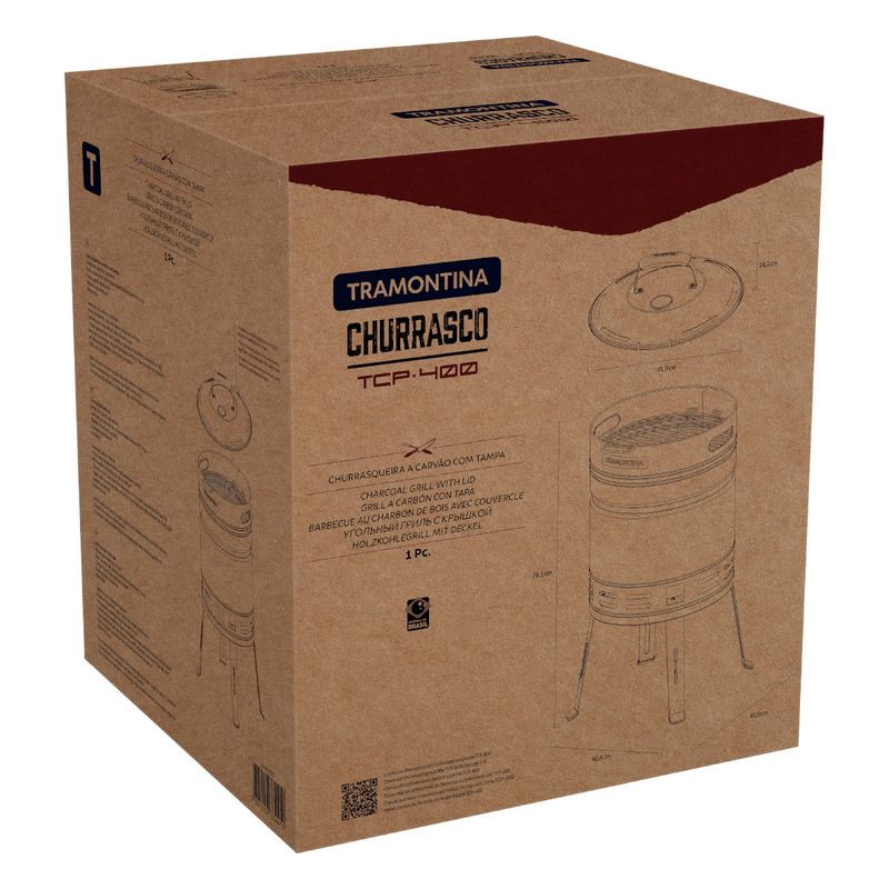 Utilidade DomésticaChurrascoChurrasqueiraChurrasqueira à Carvão Tramontina TCP 400 em Aço Inox com Bandeja para Carvão em Aço Esmaltado
