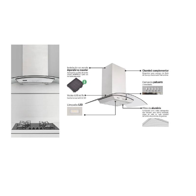 Coifa Tramontina 60 cm New Vetro Inox - 220 Volts
