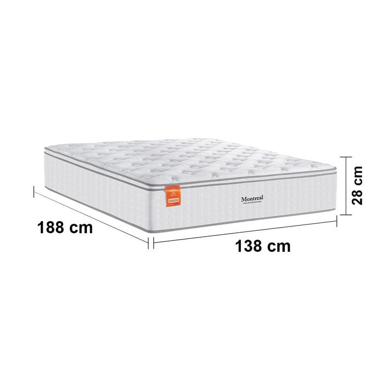 Conforto Personalizado com Molas EnsacadasO Colchão de Casal Inducol Montreal é projetado para proporcionar o máximo de conforto e suporte. Suas molas ensacadas individualmente garantem que os movimentos de uma pessoa não sejam percebidos pela outra, oferecendo um sono tranquilo e sem interrupções. Com a adição do europillow, você terá uma superfície macia que se adapta ao seu corpo, garantindo um descanso relaxante todas as noites.Frescor e Maciez para Melhorar Seu SonoRevestido com tecido de malha 100% poliéster, o colchão Montreal proporciona uma experiência de maciez ao toque. Além disso, a espuma SoftGel incorporada à sua estrutura cria uma sensação de frescor, essencial para noites mais confortáveis e revigorantes. Esse colchão alia suavidade e respirabilidade, ideal para quem valoriza uma noite de sono refrescante.Estrutura Robusta e DurávelA qualidade do Colchão de Casal Montreal se estende à sua construção. A combinação de molejo de fios de aço com espuma de poliuretano e EPS-poliestireno expandido oferece uma base firme e durável. Esse colchão foi desenvolvido para suportar o uso diário por longos períodos, mantendo sua forma e proporcionando o suporte necessário para o seu corpo, garantindo maior durabilidade e resistência.