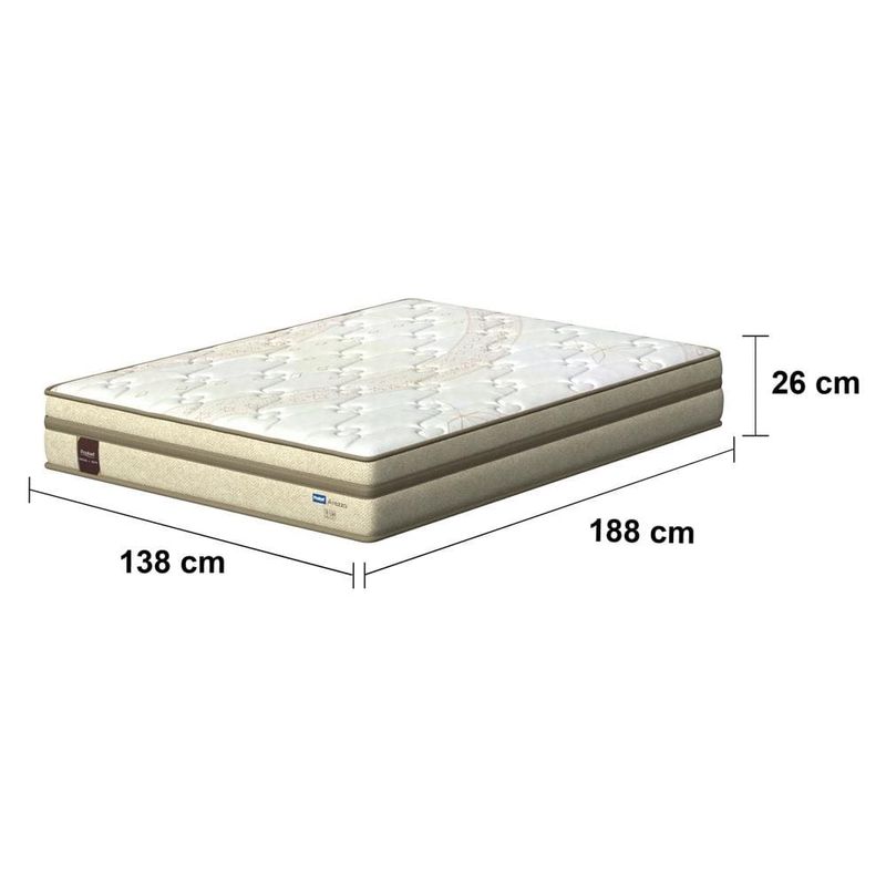 Conforto Superior e Durabilidade O colchão Arezzo é meticulosamente projetado para oferecer conforto e suporte duradouros. Com um tampo em malha de 170g nas cores branco e bege, ele proporciona uma sensação suave e aconchegante ao toque, além de aumentar a durabilidade do colchão. Suporte Firme e Consistente Este modelo utiliza aglomerado de espuma de alta densidade, conhecido por sua robustez e capacidade de fornecer suporte firme. A espuma de alta densidade oferece um suporte uniforme, ideal para sustentar o peso corporal de forma eficaz durante o uso prolongado, resistindo ao afundamento e garantindo conforto contínuo. Molas Ensacadas para Sono Tranquilo O colchão de casal Probel possui um sistema de molas ensacadas individualmente, com aproximadamente 170 molas por metro quadrado. Feitas de aço carbono temperado, essas molas oferecem maior resistência e não transmitem movimento, proporcionando um suporte adaptável que se ajusta às curvaturas do corpo, garantindo um sono tranquilo e relaxante, especialmente para casais. Estrutura Leve e Higienizada Incorporando poliestireno expandido (EPS) em sua estrutura, o colchão de casal Probel Arezzo é leve e fácil de transportar. O EPS aumenta a vida útil do produto, sendo mais resistente que a madeira e a espuma tradicionais, 100% reciclável e livre de mofo e bactérias, garantindo um ambiente de sono higiênico e saudável.