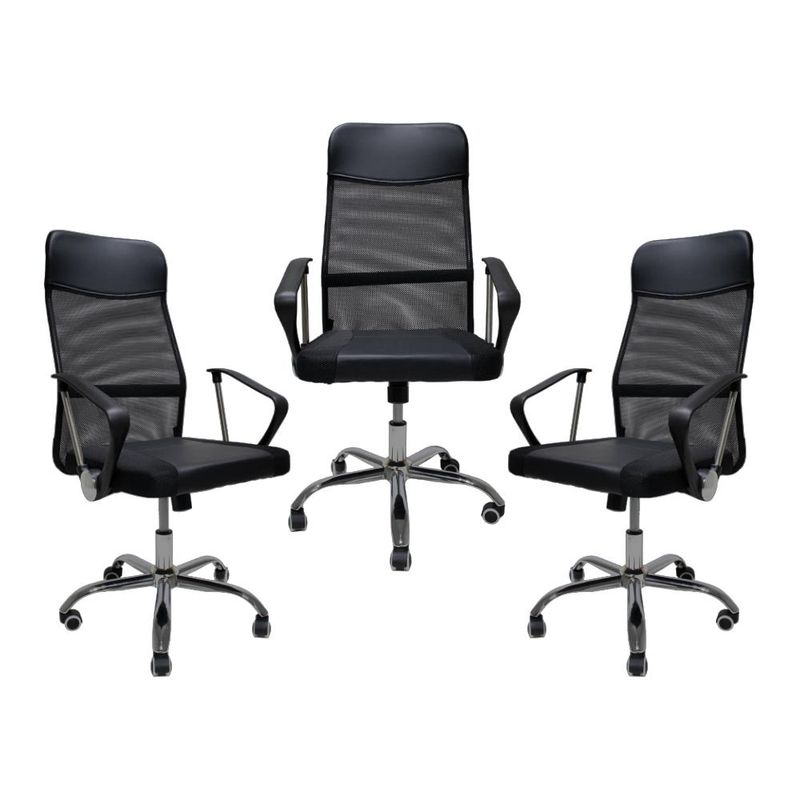 Kit 3 Cadeiras Para Escritório Base Cromada Resistente Confortável Presidente Executiva Cairo Tela Mesh Preta