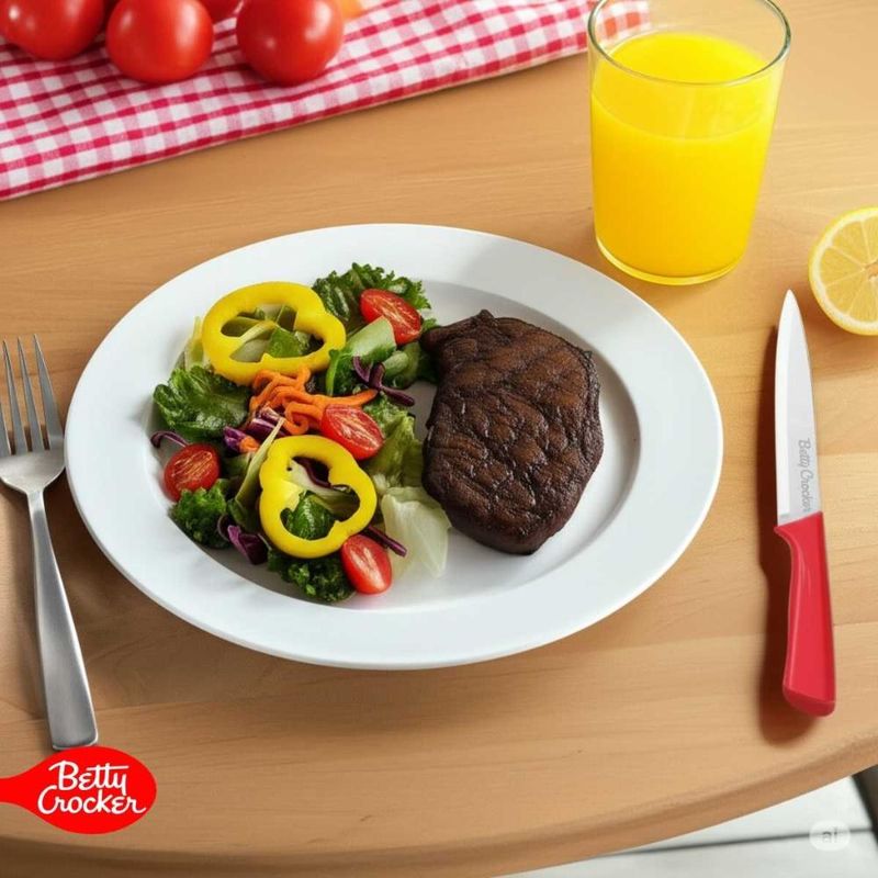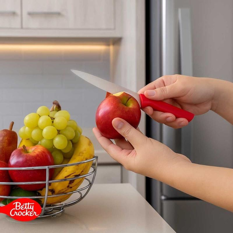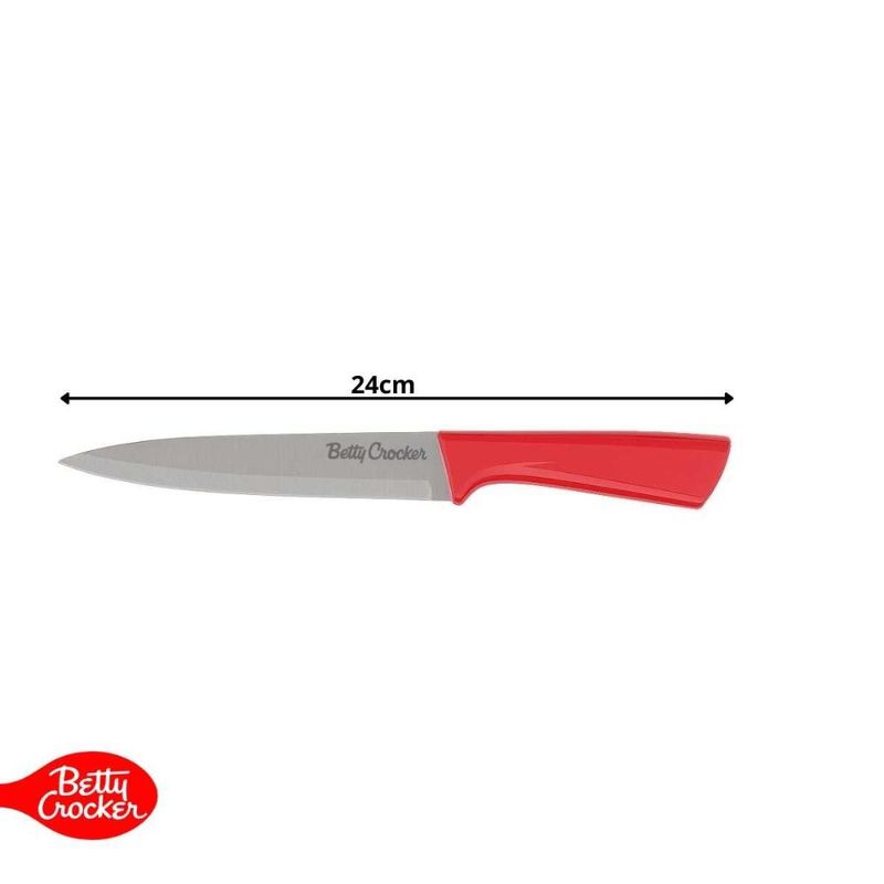 O jogo com 6 facas multiuso em aço inoxidável da Betty Crocker é a combinação perfeita entre resistência, funcionalidade e estilo.