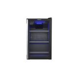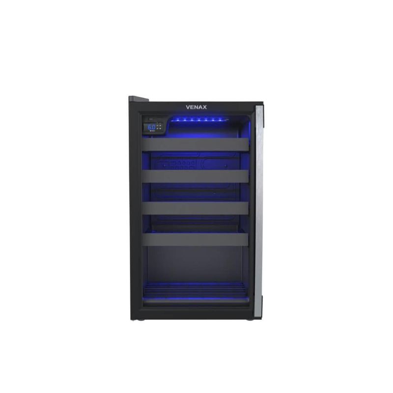 Acomoda até 24 garrafas com até 9cm de diâmetro. Seu moderno sistema de refrigeração por compressor mantém os vinhos entre 6°C e 20°C, com controle digital de temperatura, porta de vidro duplo Low-E, puxador em alumínio escovado, e elegante iluminação interna em LED azul. Suas prateleiras deslizantes facilitam o acesso e a organização, enquanto a invertida com abertura da direita para a esquerda complementa de forma inteligente a ergonomia do conjunto. Sofisticação, desempenho e design se unem para valorizar ainda mais seu espaço e suas bebidas preferidas.