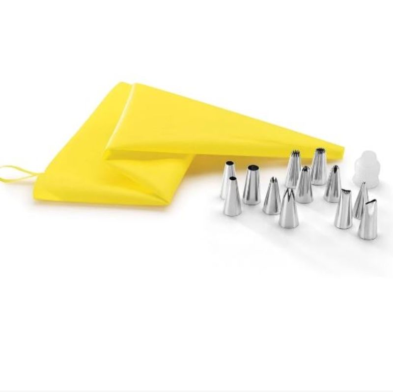 • Peças do Conjunto: Conjunto Completo: Inclui uma bolsa, 12 pontas de decoração e acoplador. Bolsa de Pastelaria: Feita com material durável e fácil de manusear. 12 Pontas de Decoração: Diversidade de designs para criar diferentes padrões e estilos em seus doces. Acoplador: Facilita a troca das pontas durante a decoração, proporcionando maior praticidade.