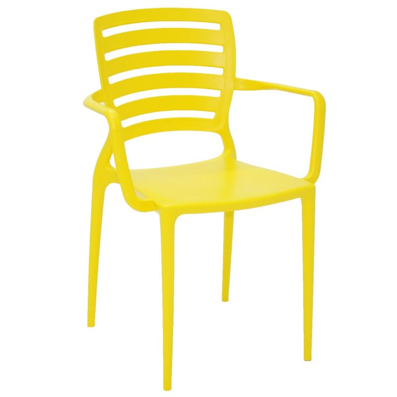 Conjunto de 4 Cadeiras Plásticas Tramontina Sofia com Encosto Horizontal e Braços em Polipropileno e Fibra de Vidro Amarelo
