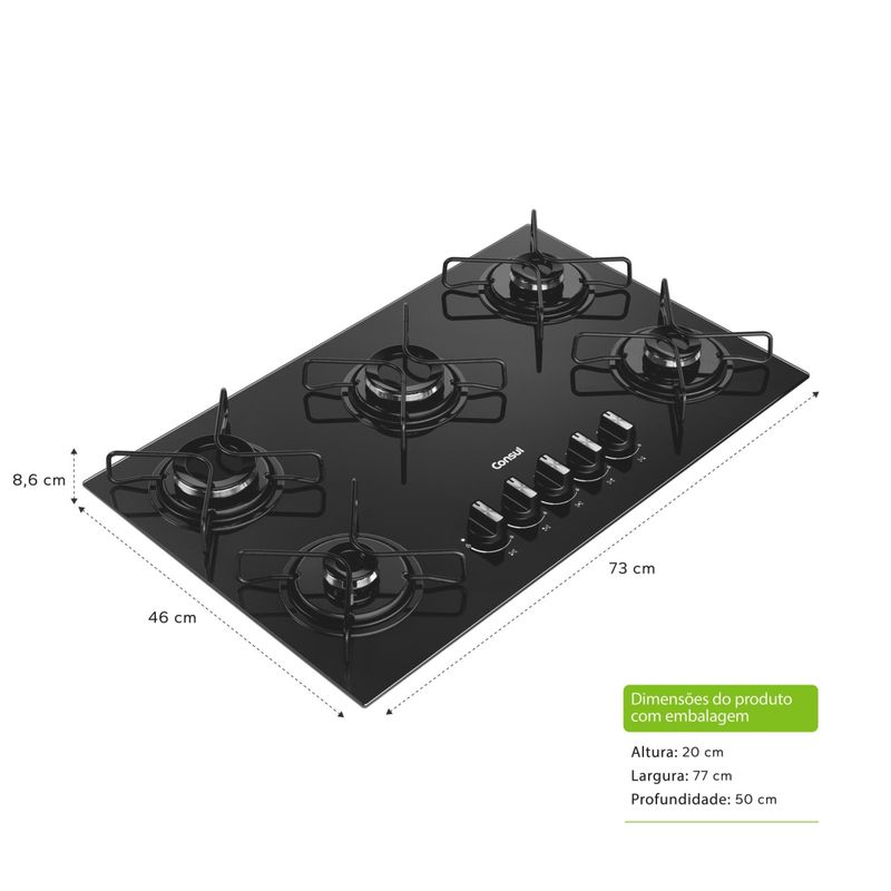 Cooktop 5 Bocas Consul CD075BE Mesa de Vidro Grade de Aço Ferro Aramado Bivolt Preto