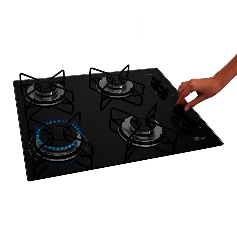 Cooktop a Gás Fischer 4 Bocas Fit Line Vidro Preto