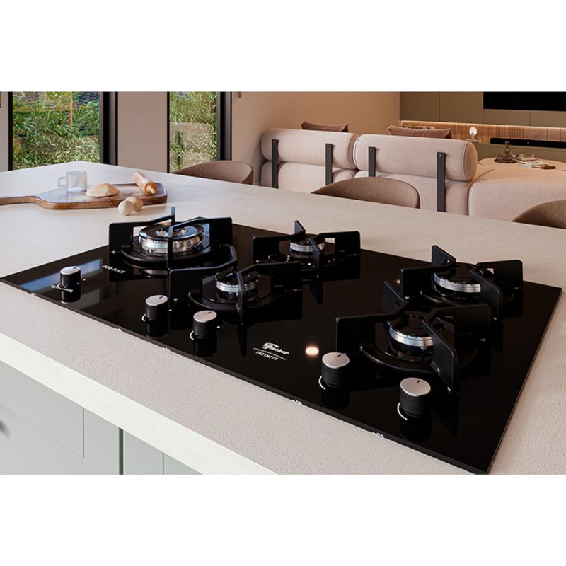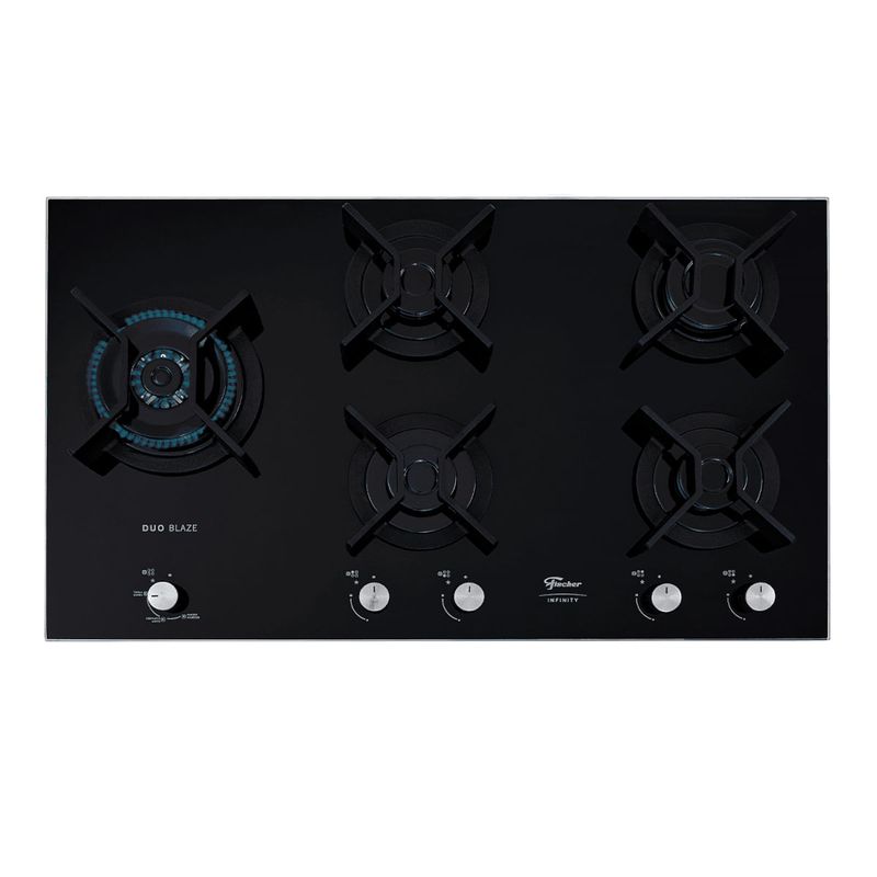 Cooktop a Gás Fischer 5 Bocas Tripla Chama Infinity Duo com Trempe de ferro fundido Mesa Vidro Bivolt