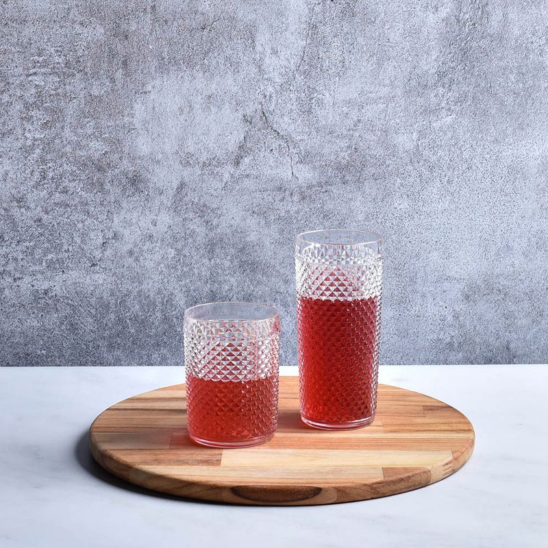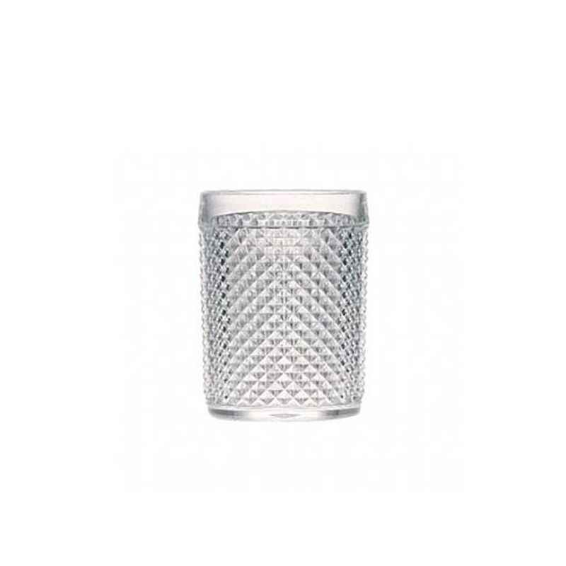 Desenvolvido em acrílico pela brasileira Kenya, o copo baixo da linha Diamond, possui design diferenciado tridimensional em alto relevo, proporcionando um efeito lindo à mesa e combinando perfeitamente com a jarra da mesma linha. Produtos em acrílico são ótimas opções para reuniões familiares e eventos ao ar livre, sua resistência torna esse item a melhor opção.