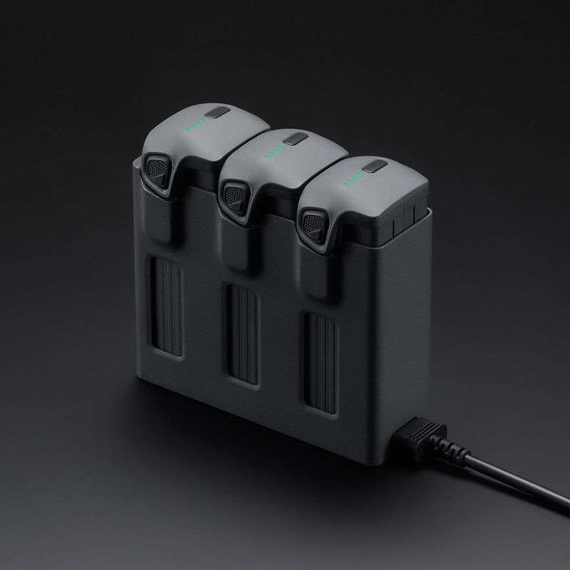 Com o adaptador de energia de 240 W DJI Mavic, o hub de carregamento paralelo Mavic 4 Pro carrega totalmente uma bateria em 51 minutos e pode carregar três baterias ao mesmo tempo via porta Mini SDC. O hub de carregamento paralelo aumenta a eficiência ao priorizar a bateria com menor carga. Uma vez que todas as três baterias atingem o mesmo nível de carga, ele muda para carregamento paralelo, carregando completamente todas as três baterias em apenas 90 minutos.