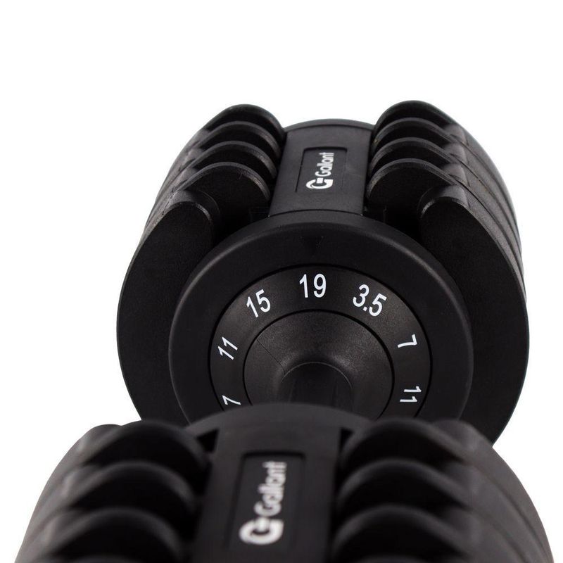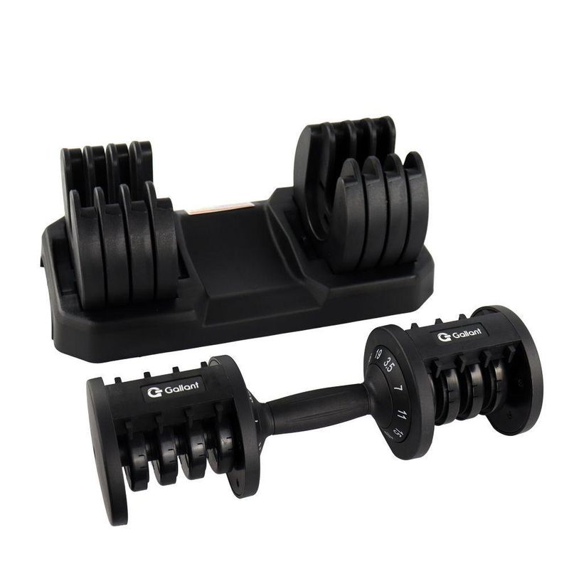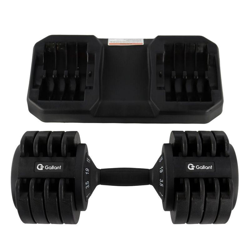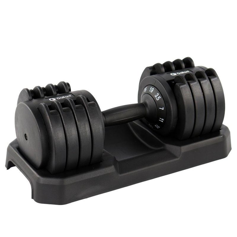 Dumbbell Halter Gallant Regulável Anilhas 19Kg Com Base Elite Pro - (GDB19R0A-PT)O Dumbbell Halter Regulável Anilhas 19kg Gallant Elite Pro é a chave para transformar seus treinos em casa. Com um design moderno em preto e detalhes em branco, esse Dumbbell combina estilo com força. Feita com materiais de alta qualidade, incluindo aço e ABS, ele é projetado para uso residencial, garantindo durabilidade. A característica que se destaca é a versatilidade: com pesos selecionáveis de 3,5KG / 7KG/ 11KG/ 15KG/ 19KG, em um único produto, você pode personalizar seus treinos para atender às suas necessidades. Eleve seus treinos, alcance seus objetivos e transforme seu corpo com o Dumbbell Gallant Elite Pro!
