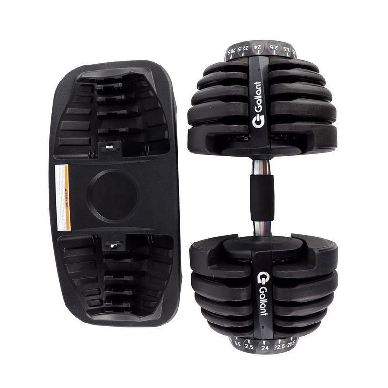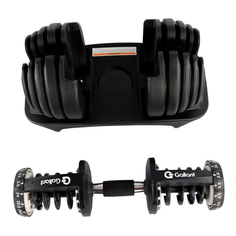 Dumbbell Halter Regulável Anilhas 24Kg Gallant Elite Pro - (GDB24R0A-PT)O Dumbbell Halter Regulável Anilhas 24kg Gallant Elite Pro é a chave para transformar seus treinos em casa. Com um design moderno em preto e detalhes em branco, esse Dumbbell combina estilo com força. Feito com materiais de alta qualidade, incluindo aço e ABS, ele é projetado para uso residencial, garantindo durabilidade. A característica que se destaca é a versatilidade: com pesos selecionáveis de 2,5kg / 3,5kg / 4,5kg / 5,5kg / 6,5kg / 8kg / 9kg / 10kg / 11,5kg / 13,5kg / 16kg / 18kg / 20,5kg / 22,5kg / 24k em um único produto, você pode personalizar seus treinos para atender às suas necessidades. Eleve seus treinos, alcance seus objetivos e transforme seu corpo com o Dumbbell Gallant Elite Pro!